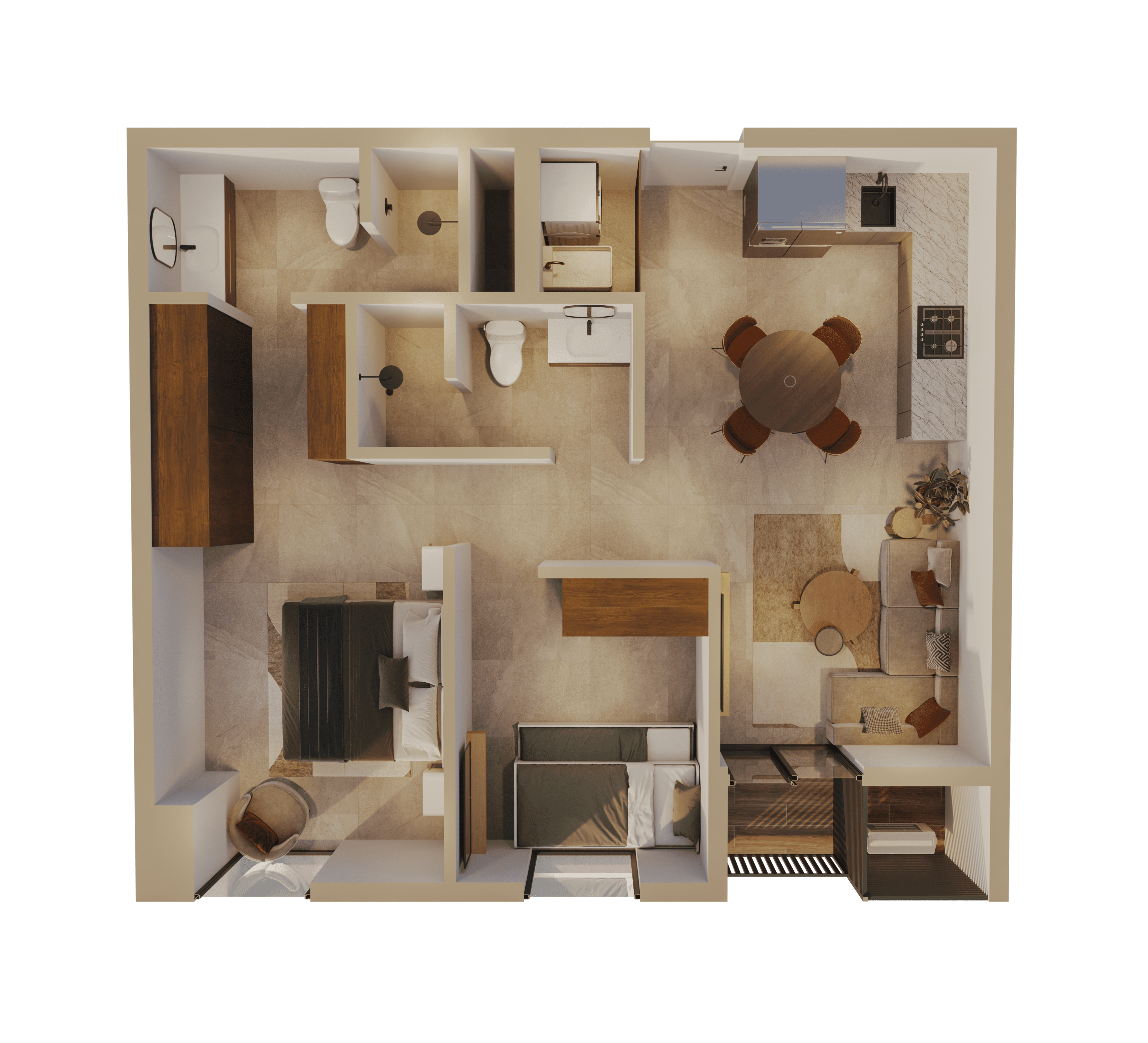Nuestro departamento Tipo A con 2 recámaras te permite vivir en un espacio óptimo con lo que realmente necesitas y unas increíbles vistas a las montañas para disfrutar del panorama en cualquier hora del día.